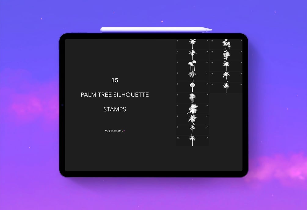 15 palm tree silhouette stamps for Procreate!
